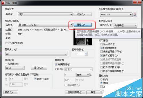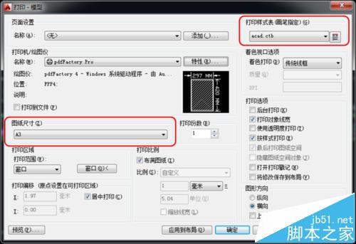 1、啟動AutoCAD的打印頁面,在打印機下拉列表中選擇“pdfFactory Pro”。