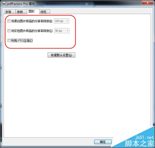 5、在“pdfFactory Pro屬性”對話框中選擇“圖形”選項卡,將該選項卡中所列出的項目全部取消勾選。單擊“確定”,完成pdfFactory Pro屬性設置。