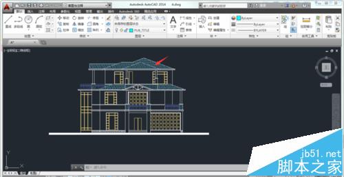 14、對于CAD圖紙中其他戶型的平面與立面用以上的方法一個個寫塊出來,對于立面圖來說,有部分是填充涂料,我們同樣可以刪除掉或者凍結隱藏圖層。如下圖立面房頂瓦的部分就是顏色填充,我們可以將其隱藏凍結或者直接按delete鍵刪除,其他步驟與平面圖均相同。
