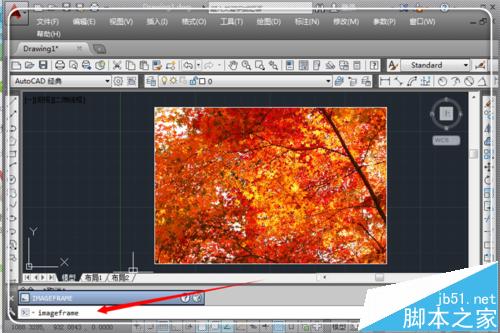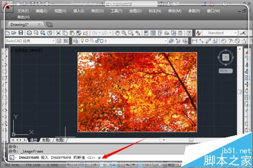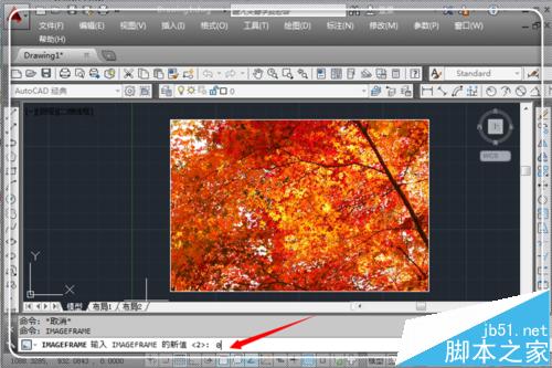 2、在cad下方的命令欄,輸入命令“imageframe”,然后點(diǎn)擊回車,激活邊框設(shè)置命令。