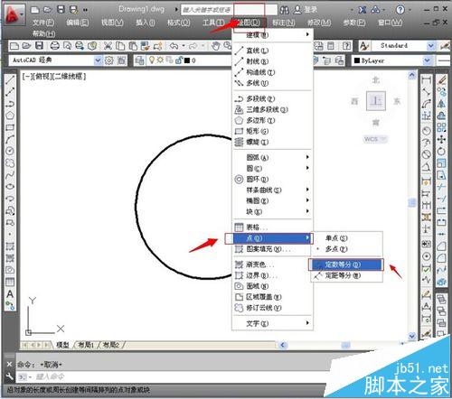 2、選擇“繪圖”,“點(diǎn)”,“定數(shù)等分”