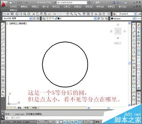 用這個方法,可以等分圓,直線,或者其它任意的曲線。可以按數(shù)量等分,也可以按距離等分。但是,等分后插入的點(diǎn)太小了,看不見,不知點(diǎn)在哪里,怎么辦?可以設(shè)置點(diǎn)的樣式來解決。下面舉例說明。