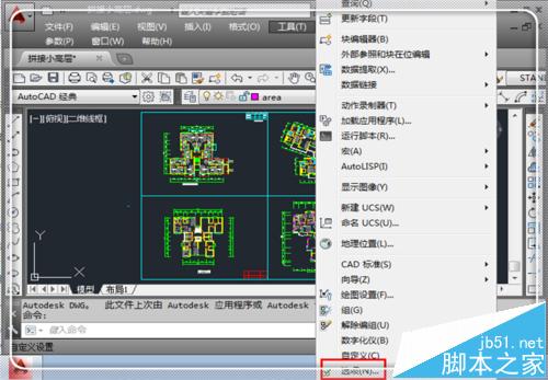3、彈出工具的相關(guān)選項(xiàng),點(diǎn)擊最下面的“選項(xiàng)”進(jìn)入CAD選項(xiàng)窗口。
