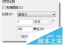7、在“打印比例“中勾去”布滿圖紙“,如圖所示。