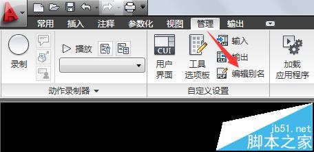 快捷命令可以簡化命令名的輸入,在acad.pgp文件中編輯。在功能區菜單的【管理】下選擇【編輯別名】,可以打開記事本格式的acad.pgp文件,編輯完后存盤即可。