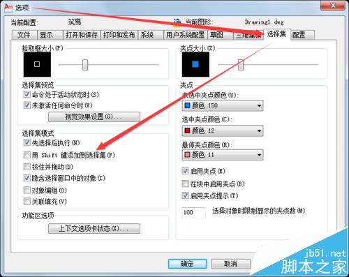 有時在選擇物體時,無論是單選還是框選,每次選擇總會取消前一次選擇,總是只有最后一次選擇有效,必須同時按住Shift鍵才能連續選擇。解決方法:OPtions命令打開【選項】窗口,在【選擇集】選項卡里,去除【用Shift鍵添加到選擇集】前面的勾選。