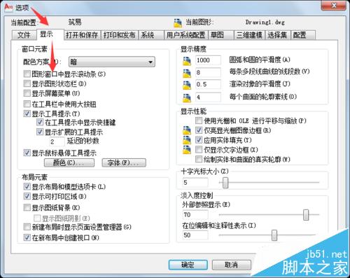 在CAD中,通過鼠標鍵的快捷操作和Zoom縮放、Pan平移等命令已經可以很方便地瀏覽圖形了,因此完全可以去除占用圖形窗口區域的滾動條:OPtions命令打開【選項】窗口,在【顯示】選項卡中,去除【圖形窗口中顯示滾動條】前面的勾選。