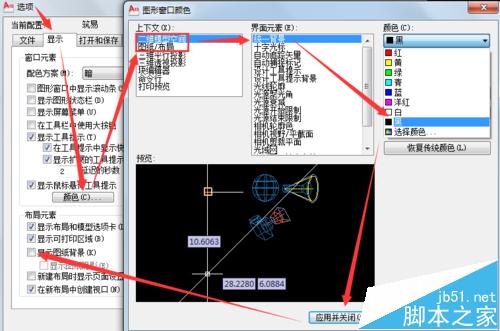 每次安裝CAD初次使用時,圖形窗口默認的是白色背景,長時間繪圖時不利于視力保護。OPtions命令打開【選項】窗口,選擇【顯示】選項卡里的【顏色】,在打開的【圖形顏色窗口】中,分別將“二維模型空間”和“圖紙/布局“的”統一背景“的【顏色】設置為黑色。為了讓圖紙空間圖紙以外區域的背景也顯示為黑色,在回到【顯示】選項卡時,還要去除【顯示圖紙背景】前面的勾選。