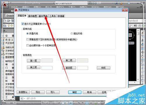 4、進入到自定界面之后,點擊菜單欄的“基本界面”按鈕。