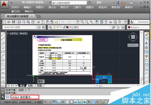 3、進行縮放,在命令欄出現(xiàn)縮放“scale”命令,要求指定對象,點擊需要縮放的對象。