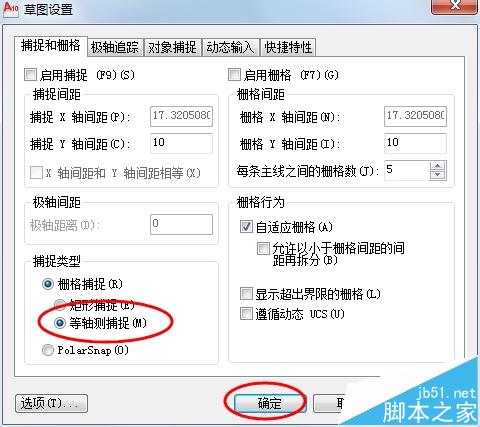 2、打開“捕捉和柵格”的選項(xiàng),捕捉類型選擇“等軸測(cè)捕捉”。打開“正交模式”