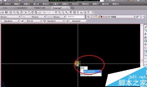 3、在左下角點擊布局1,出現布局的頁面,輸入“MV”在布局空間上畫一個小方框,在小方框里可以看到剛才花的圖。