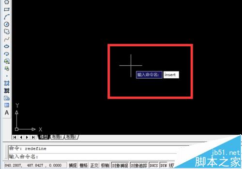 3、點(diǎn)擊確定 ,狀態(tài)欄就顯示 redefine 命令。