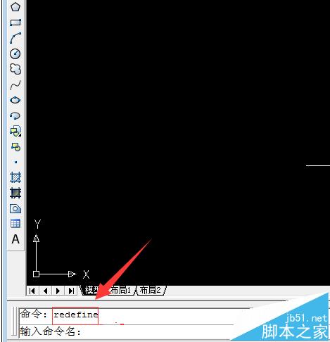 2、我們用到的命令是“redefine”命令,首先輸入redefine。