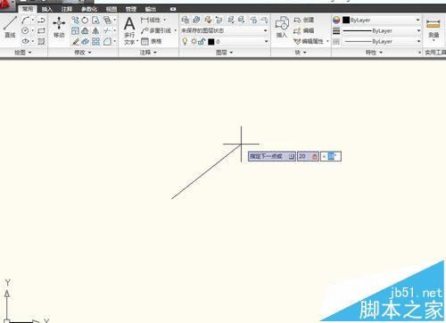 2、前面教程講過(guò),直線快捷鍵L回車后,使用直線畫線功能,然后在第一個(gè)空中輸入長(zhǎng)度數(shù)值,然后用【Shift+<】就可以跳到第二個(gè)輸入角度,輸入角度數(shù)值后,敲擊空格和回車就畫出一條帶極坐標(biāo)的線條出來(lái)。