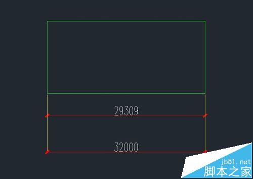 3、對(duì)矩形的“長”進(jìn)行了標(biāo)注,此標(biāo)注的數(shù)字29309是真實(shí)的尺寸大小;