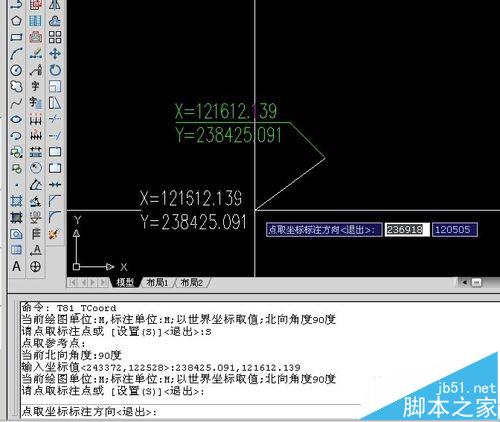 4、輸入這個點正確的坐標值, 先輸Y,再輸X,回車