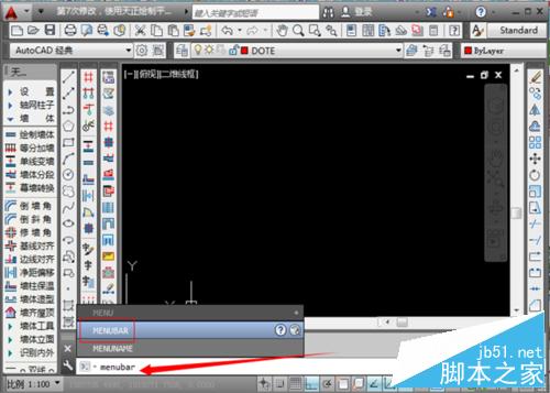 2、在命令欄輸入“menubar”,然后點擊“回車”。