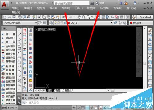 1、這里以cad2014為例,其他版本的操作一樣,我這里打開了天正,由于天正是基于cad的,同時對操作步驟沒有影響,所以沒有關閉,直接就截圖給打開講了。如這里,菜單欄不見了。