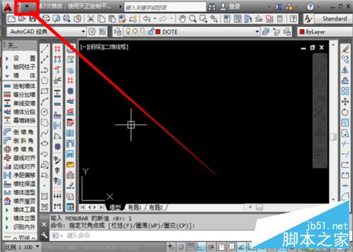 1、這里是個人的操作經驗,仔細才能夠發現的。點擊繪圖界面左上角挨著cad圖標的那個倒三角形。