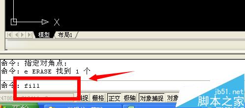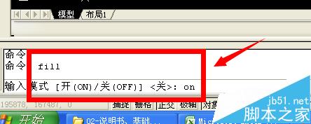 3、然后輸入“fill”命令,然后在輸入"on",如圖