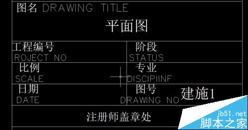 7、我在上述對話框中輸入“屬性”選項中的值“a”改成“平面圖”;“b”改成建施1“。確定之后,看到的結果如下圖。這個時候讀者應該知道了吧,然后你可以把此塊多個復制,雙擊其中的兩個“值”,是可以輸入自己想要的內容的,而不會改變前面塊的內容,不像直接的塊一樣,改了其中一項,后面復制的塊都會改變,這樣我們就可以在圖框中添加多個att命令,放到多個位置,在定義成塊,修改其中的圖名、圖號什么的。