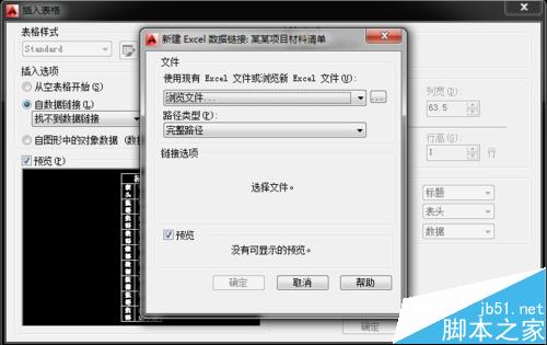 4、在新出現的對話框中,點擊”瀏覽文件“右側的按鈕,找到你要導入到CAD中的表格數據Excel。