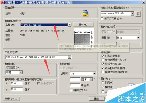 4、在彈出的頁面設置對話框中將打印機/繪圖儀調整為dwg to pdf.pc3,同時選擇合適的圖紙尺寸,如下圖: