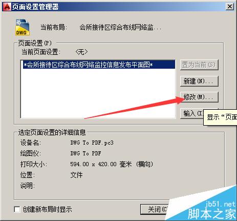 3、在彈出的頁面設置管理器對話框中選擇【修改】按鈕,如下圖: