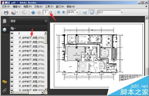 13、打開該pdf文件,可以看到3張圖紙到一個pdf中了,同時左側可以點擊要顯示或關閉的圖層,非常方便。下圖為轉換完成后的pdf文件,教程結束。