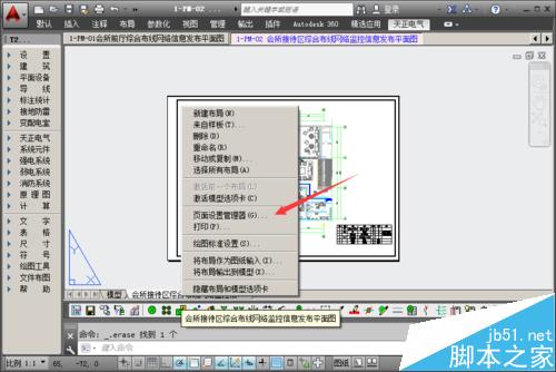 2、如果要統一發布為pdf文件,就需要在布局中將繪圖儀統一調整為dwg to pdf 打印機,下面教大家如何設置打印機,先在圖紙的布局標簽上點擊右鍵,彈出的菜單中,選擇【頁面設置管理器】,如下圖: