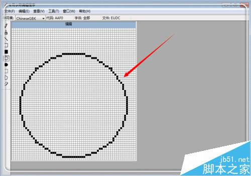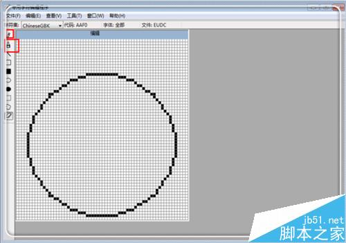 6、這時候進入了CAD特殊字符的編輯界面,這里你不僅僅可以創建帶有圈的字符,你還能更具自己的需要,創建任何字符。點擊左邊工具欄的“橢圓工具”。