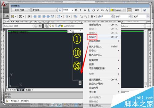 14、一個任意的帶圈字符就制作完畢。當然,你還可以采取才CAD中先繪制一個圓圈,然后輸入數字,將兩者制作成塊,不過該方式效果不是很好,故不贅述。本方式不僅僅能夠解決帶圈數字輸入的問題,避免了復雜的編程,同時還拋磚引玉,按照該操作,制作出自己需要的任何字符,隨時可以調用插入。