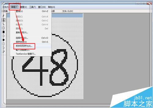 9、繪制一個帶圈的48,繪制完畢,點擊左上角的“編輯”,然后點擊“將字符另存為”。