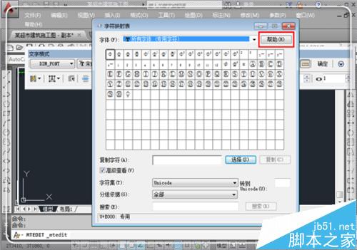 1、當然,10~30之間的帶圈的符號可能仍然不能夠滿足大家的需要,可能需要超過30的帶圈的數字,這里就可以使用CAD自帶的編程,自己動手制作了,這就是CAD的強大之處。根據以下步驟,制作也不難。為節約篇幅,前面的進入步驟就不多說,和方式二中的一樣:進入多行文本編輯——點擊@后面的倒三角形——選擇“其他”進入字符映射表。點擊右上角的“幫助”。