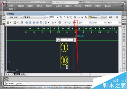 1、輸入10以下的帶圈數字很簡單,但是輸入10~30的帶圈的數字,會的人就較少了。同樣進入多行文字編輯器,然后點擊“@”按鈕后面的倒三角形。