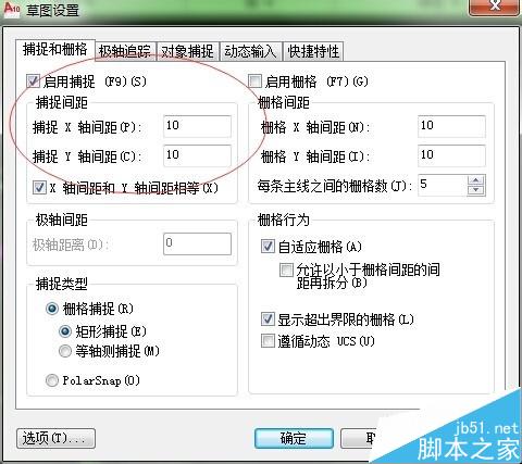3、將啟用捕捉選項不選擇,最好將下面間距調小,確定就可以了.如圖