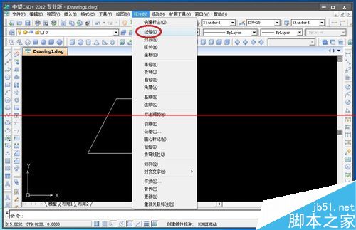 6、選擇工具欄中的標注按鈕,再選擇線性標注。