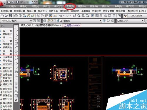 2、找到CAD菜單欄的左上角的“工具”,點擊“工具”