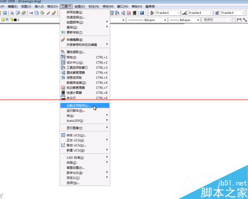 9、除上述方法外,還有點擊菜單欄工具--->AutoLISP--->加載應(yīng)用程序同樣也可完成.lsp程序文件的加載。