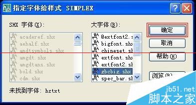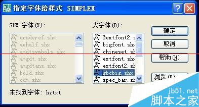 2、若點擊確定后,仍然出現字體替換對話窗口,則繼續選擇“gbcbig.shx”字體,然后單擊確定按鈕。直至不再出現字體替換對話窗口。至此,AutoCAD文件中的亂碼一般都能解決。