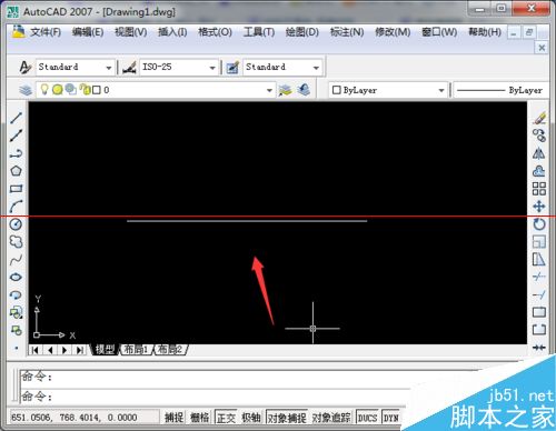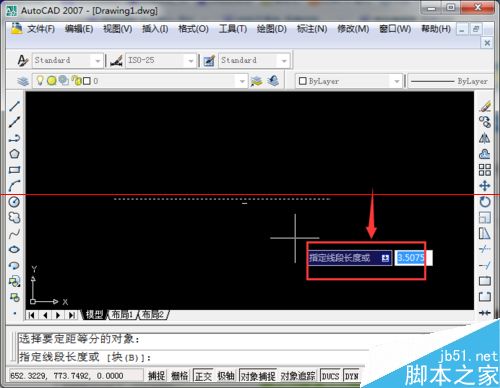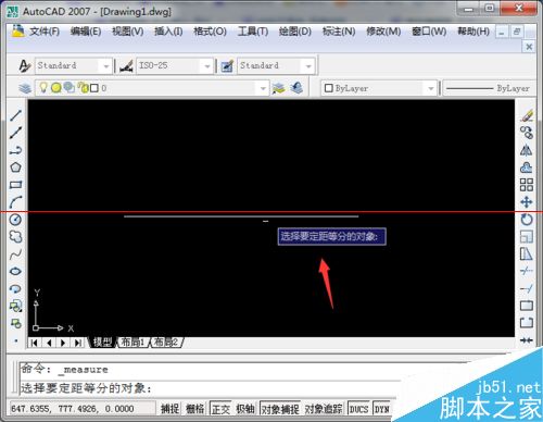 1、我們?cè)贑AD中畫出一條直線,這個(gè)直線有兩個(gè)端點(diǎn),現(xiàn)在我們要在直線上找到等間距的點(diǎn),可以使用繪圖功能。