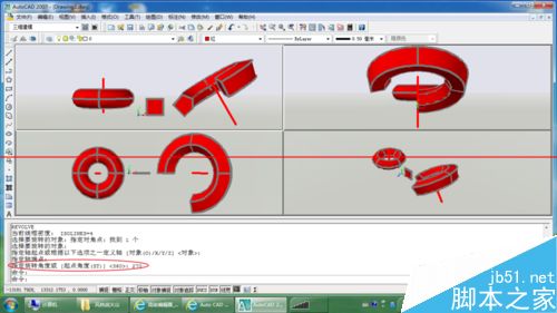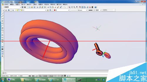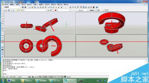 5、注意看命令行。rev 選擇實體 完成后 選擇軸線,如圖,就形成了回轉實體。