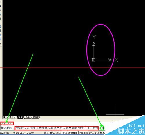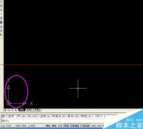 2、命令行輸入→ ucsicon→回車選擇選項里的n輸入→回車,看看坐標軸是不是在左下角了,憑你怎么動鼠標都不會移動了