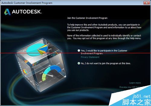 2、打開軟件突然彈出Autodesk Customer Involvement Program,