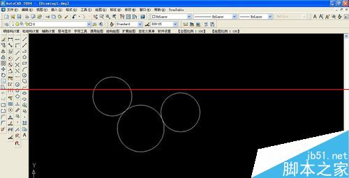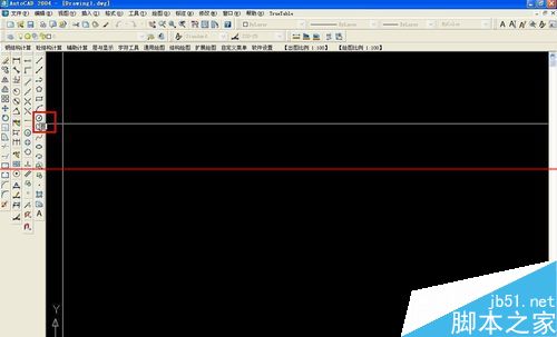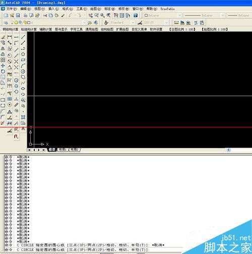 2、點擊紅色框里,圓標志按鈕 ,或者在命令行中直接輸入快捷命令C