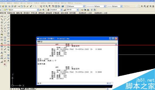 7、圓弧的測量,我們在命令行中輸入 LIST,在選擇圓弧,如圖我測量出圓弧的長度是18.0813