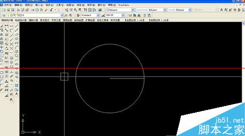 5、第二種圓的畫法,兩點畫圓,同上,在命令行中輸入 2P ,選擇一條直線的一段在選擇直線的另一端,畫出如圖所示的圓