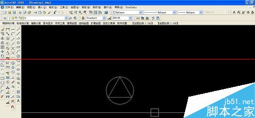 4、根據命令提示,點擊三次,三次選擇不同的點,這里我們可以選擇三角形的三個頂點,得出如圖所示的圓