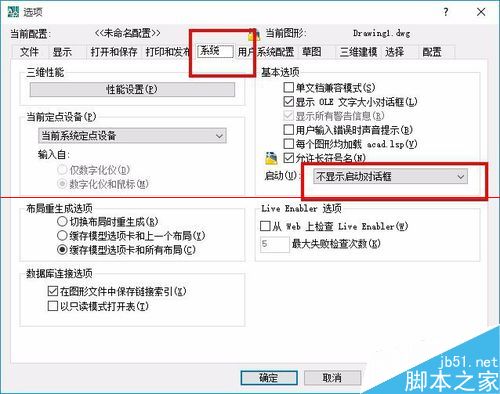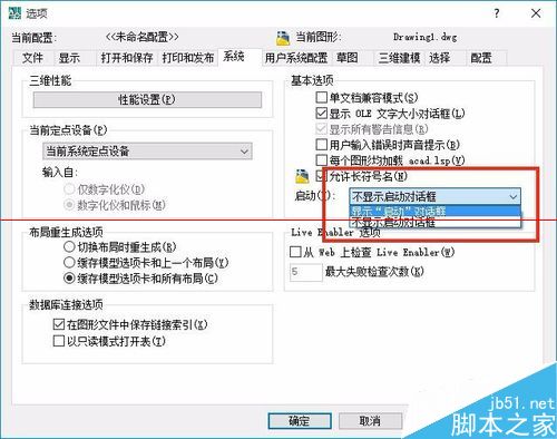 2、然后,選擇:系統—>不顯示啟動對話框,點擊下拉鍵,如下圖所示: